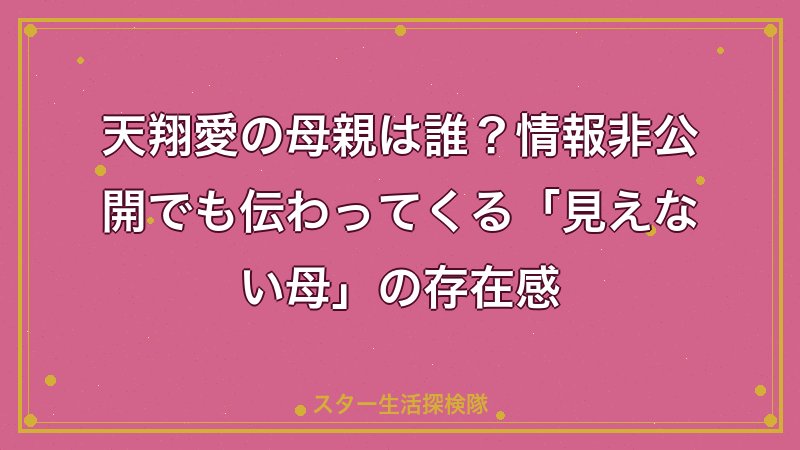 天翔愛さんの母親は、一般人の女性です。名前も顔写真も公式には公表されておらず、プロフィールにも登場しません。